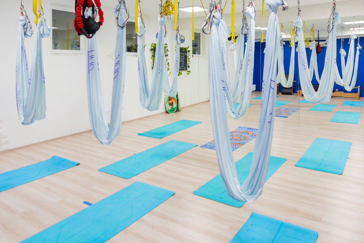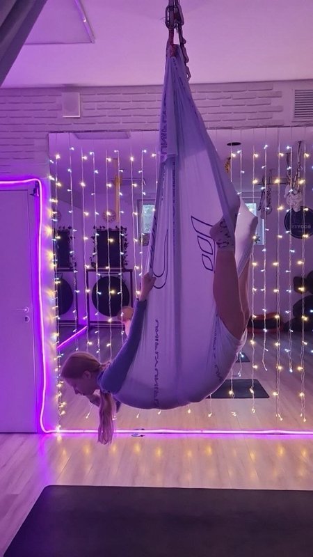 Мне нравится аэройога, но занятия в зале нет, тк часто залы тесные и включают акробатику в йогу с гамаком, и мы там все сталкиваемся выполняя акробатику. Обычно так бывает в залах.